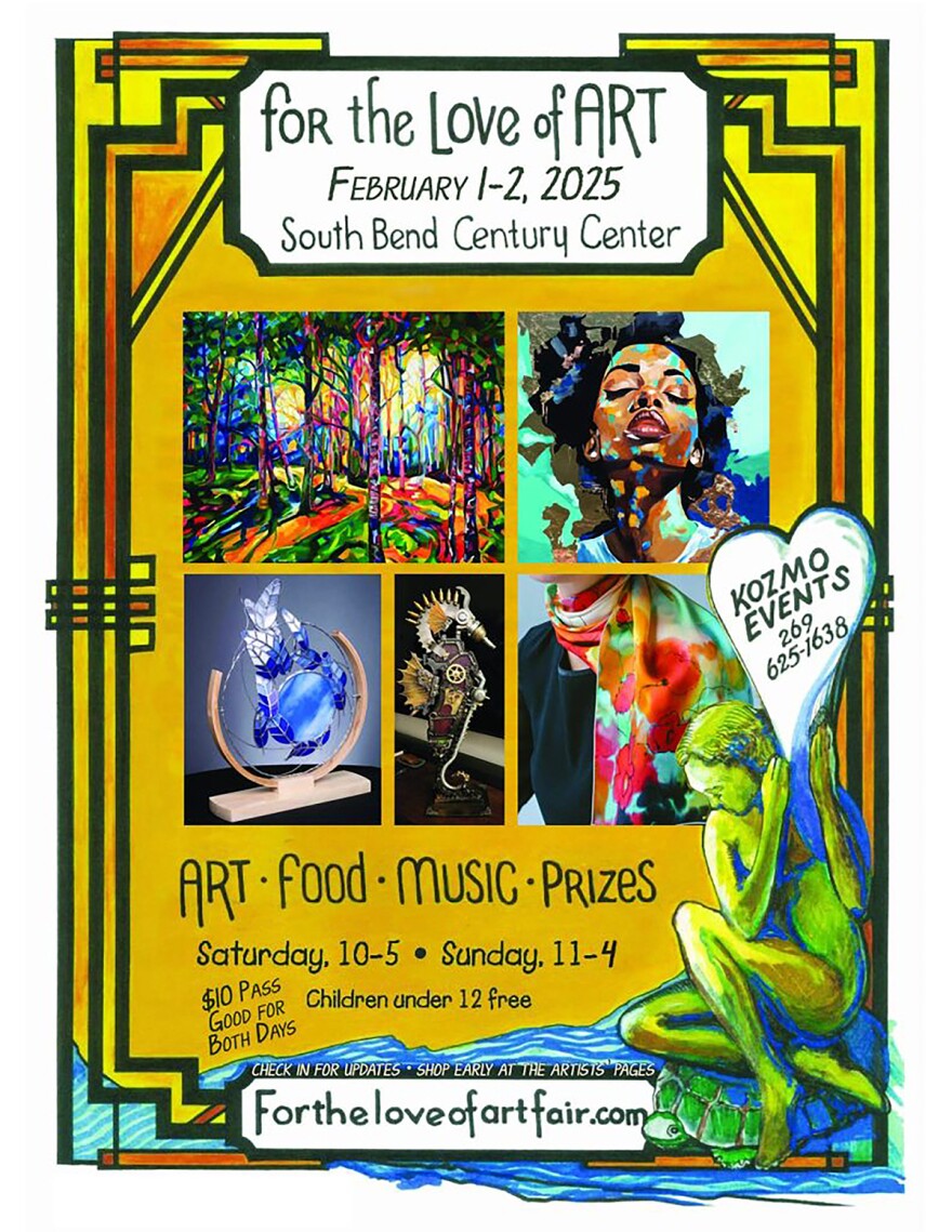 WVPE is a proud media sponsor for the Love of Art Fair. With contemporary to traditional arts this two-day showcase features artists with paintings, fine woodwork, sculptures, wearable art and more including live music at the South Bend Century Center. For the Love of Art Fair is an opportunity to shop, mingle with others while enjoying music, and enjoy beautiful expressions of creative skill and imagination. More details at fortheloveofartfair.com