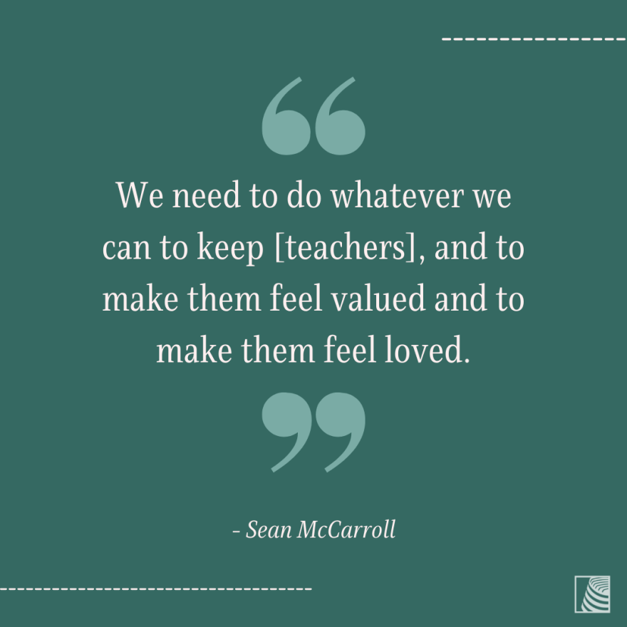 McCarroll said that even within the past nine years, he’s seen a “relatively large shift” in how teachers are viewed, and the weight their input is given in making educational decisions. “And unfortunately, I've seen that their role and their input has decreased,” he said. “They're kind of expected to shut up and put up and just make it work, when it's not always possible to make things work.”
