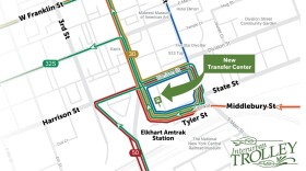 The Interurban Trolley is moving its Elkhart Transfer Center. Starting Monday, December 8, buses will stop on the east side of Second Street, between Tyler and Harrison, near the Amtrak station.