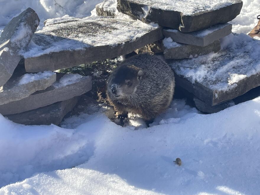 The young groundhog has seen her shadow, predicting six more weeks of winter. Just like Punxsutawney Phil in Pennsylvania.