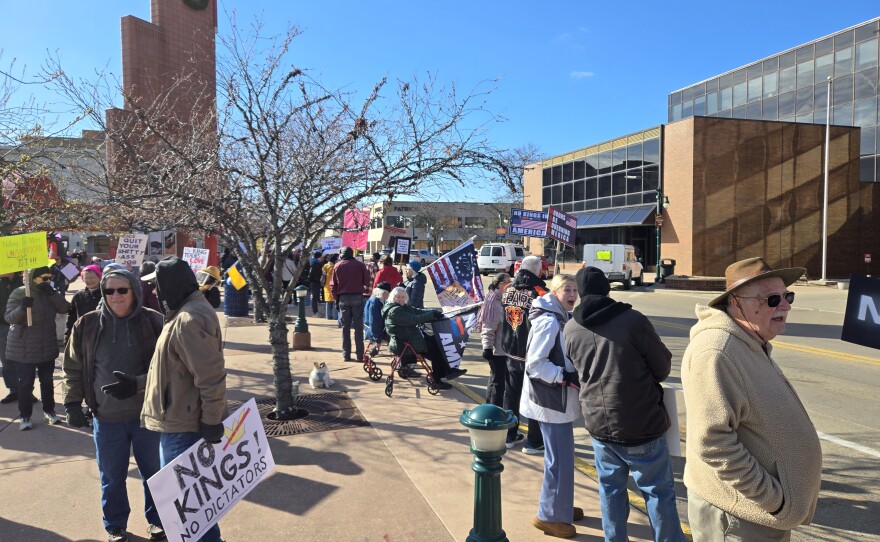 Demonstrators filled much of Elkhart Civic Plaza, as part of Saturday’s No Kings protest.