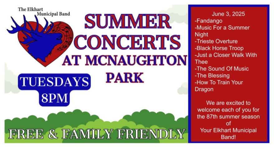 WVPE's Kent Fulmer talks with Kelly Rider-Schelle, President of the Elkhart Municipal Band about the band's second weekly concert of their summer concert series.